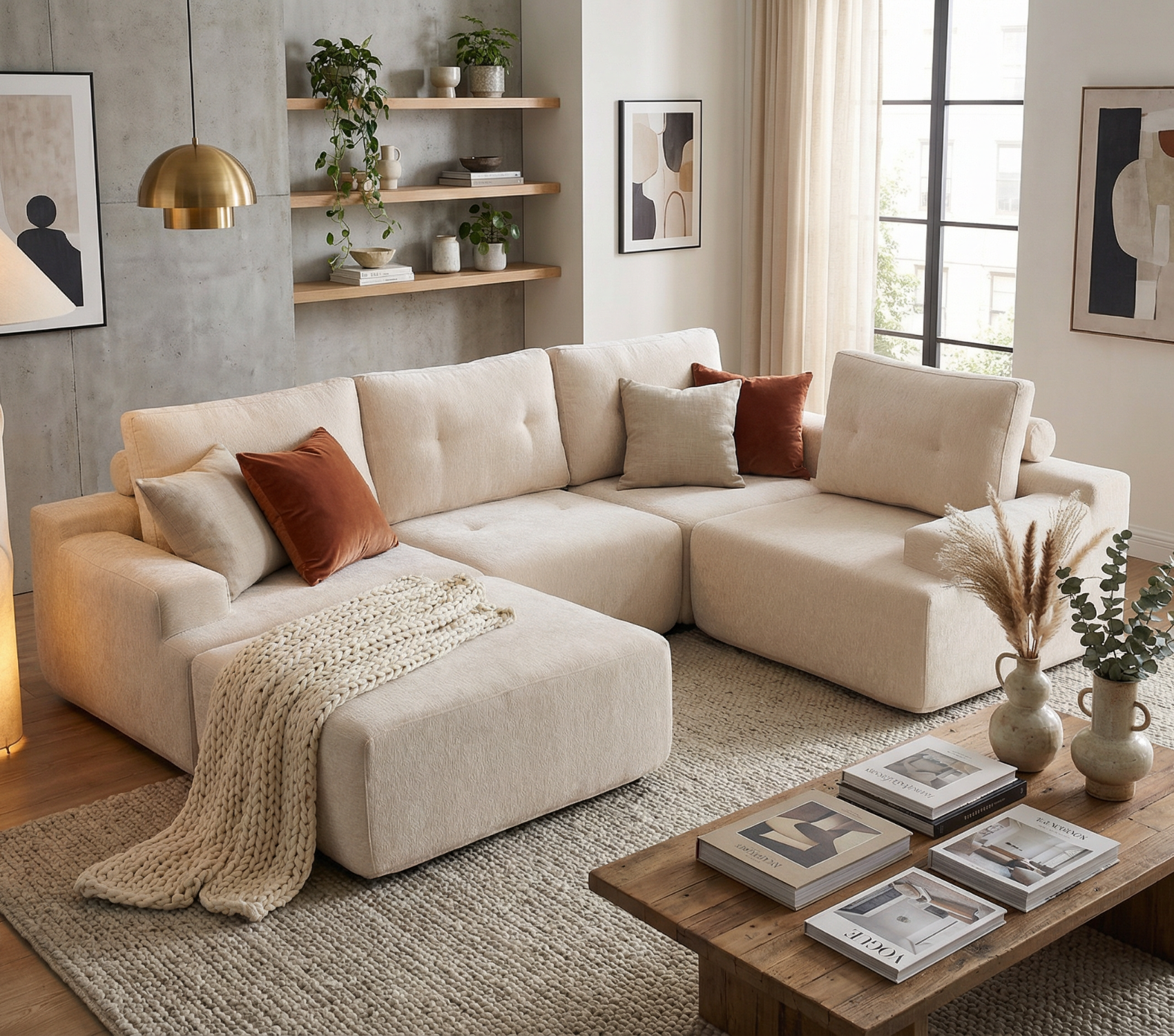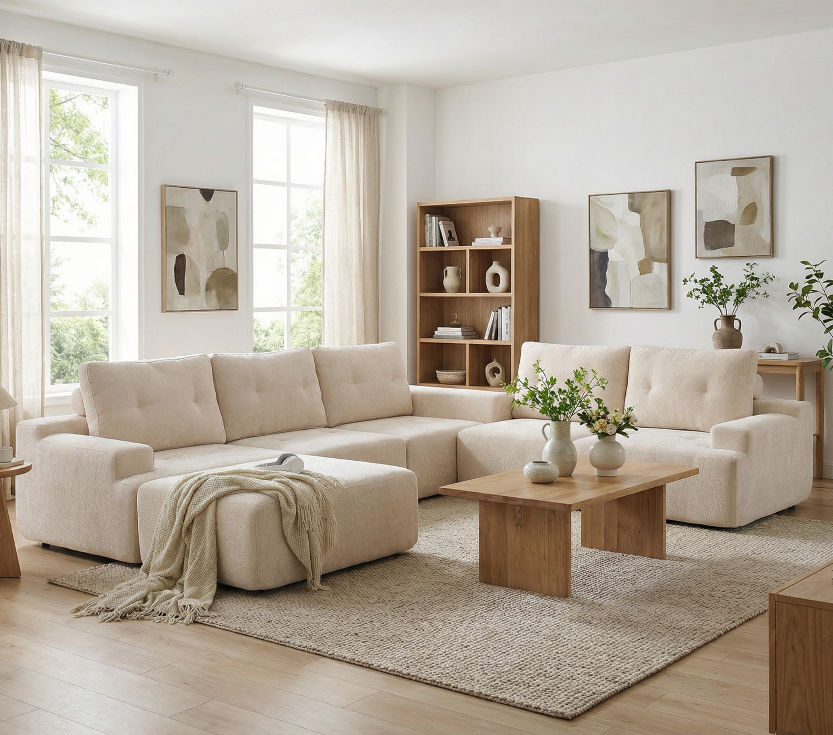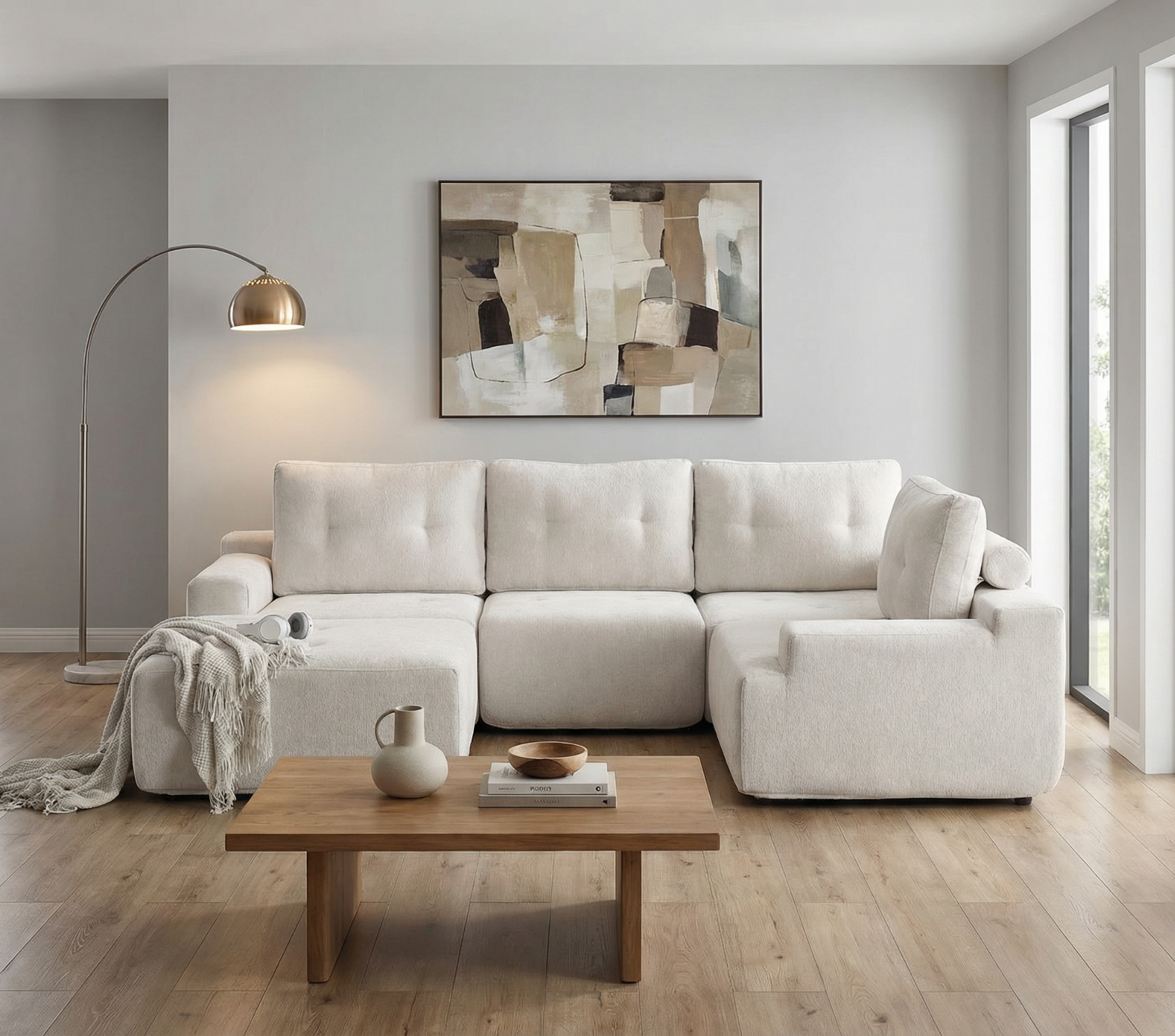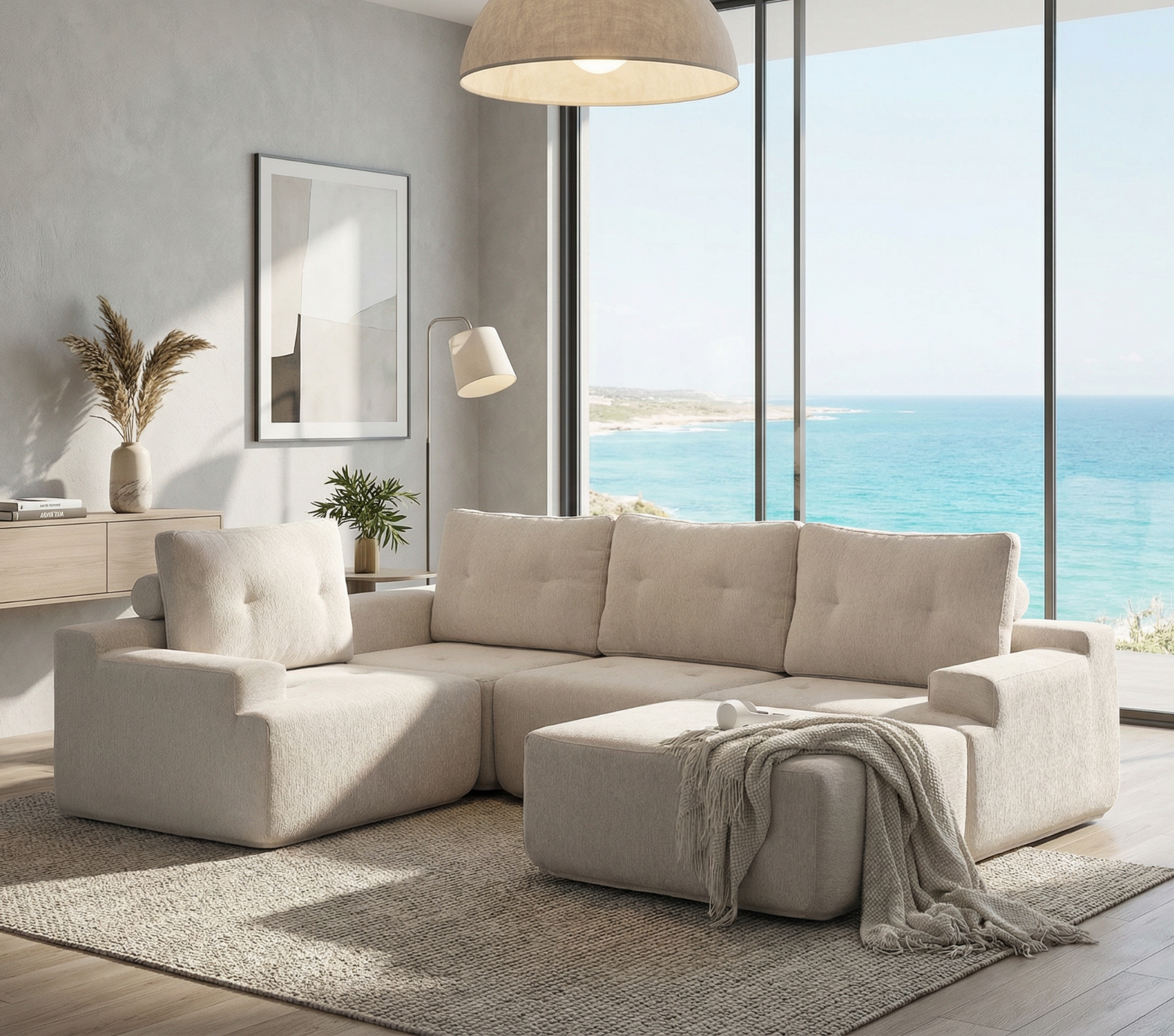 The sectional can be adjusted to fit your layout, transforming from a classic L-shape into a spacious lounging area. Built with premium cushioning and durable materials, it maintains both shape and elegance through years of daily use.