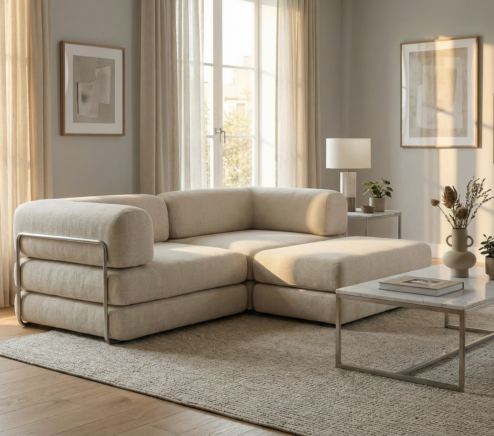 Its clean lines, modular precision, and high-resilience foam offer both durability and elegance. Crafted with premium upholstery and a solid frame, it’s built to last while maintaining its sleek appearance. Ideal for small spaces, it enhances both comfort and flow, making every square foot feel intentional.